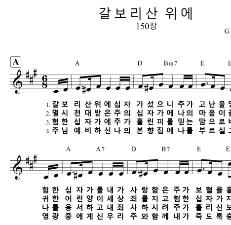 편곡악보 - 갈보리산 위에 (찬송가 150장) Ab A Bb E Eb F G 코드별악보 (예배.com)