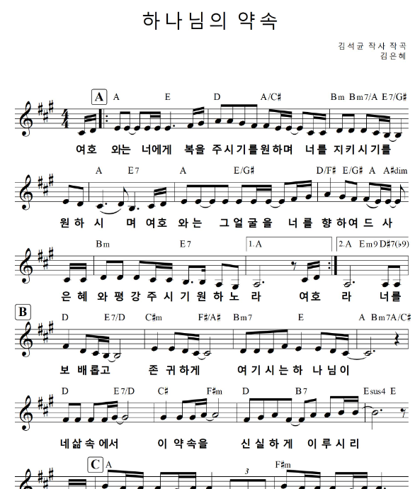 편곡악보 - 하나님의 약속(여호와는 너에게 복을 주시기를 원하며) A Bb B C (예배자.com)