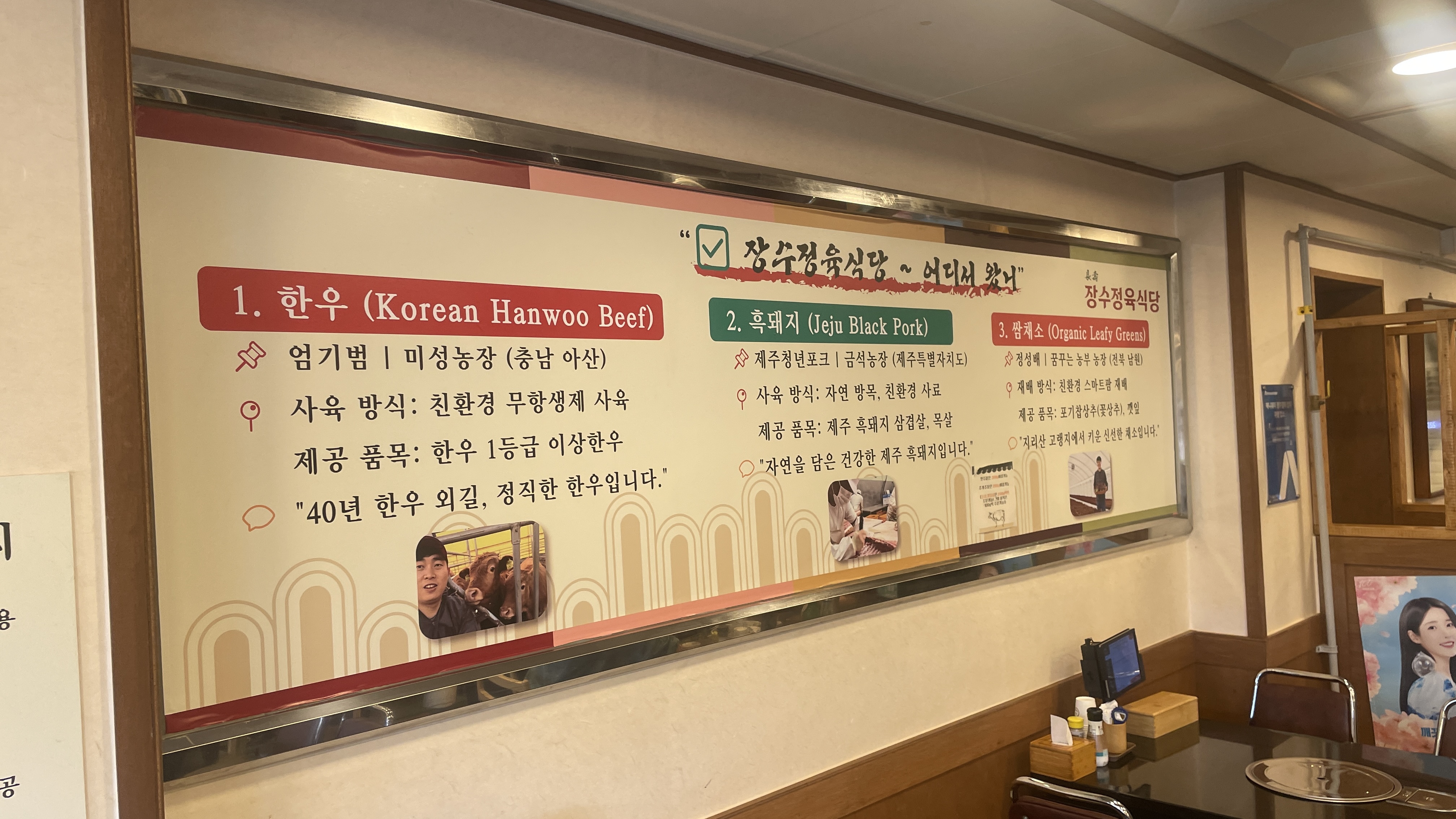 한우, 흑돼지, 쌈채소에
